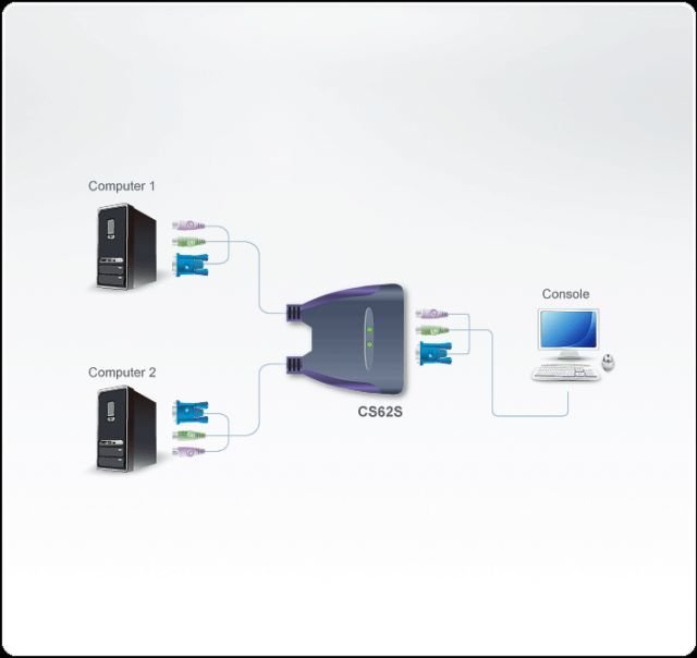 ATEN CS62S-AT 0.9M 2-PORT PS/2 VGA KABLO KVM SWITCH